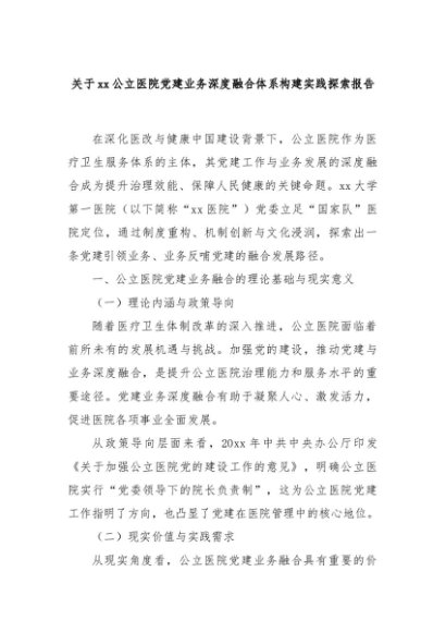 【七哥公文】2025年:关于xx公立医院党建业务深度融合体系构建实践探索报告+更多免费公文+VX:QiGeGongWen2024