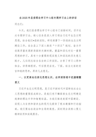 / 【七哥公文】2025年:在2025年县委理论学习中心组专题学习会上的讲话+更多免费公文+VX:QiGeGongWen2024