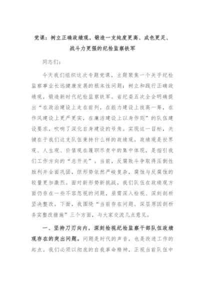 【七哥公文】2025年:党课:树立正确政绩观,锻造一支纯度更高、成色更足、战斗力更强的纪检监察铁军+更多免费公文+VX:QiGeGongWen2024