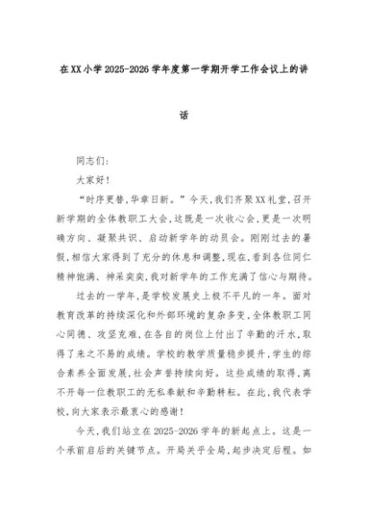 【七哥公文】2025年:在XX小学2025-2026学年度第一学期开学工作会议上的讲话+更多免费公文+VX:QiGeGongWen2024