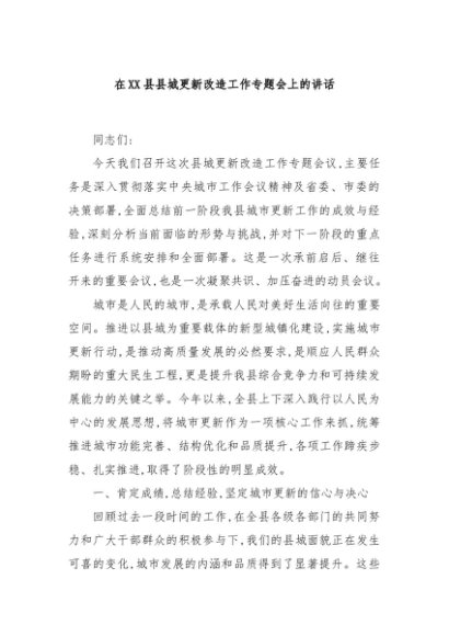 / 【七哥公文】2025年:在XX县县城更新改造工作专题会上的讲话+更多免费公文+VX:QiGeGongWen2024