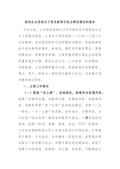 / 【七哥公文】2025年:国有企业党委关于党员教育示范点建设情况的报告+更多免费公文+VX:QiGeGongWen2024