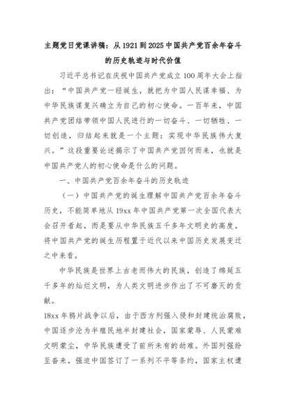 【七哥公文】2025年:主题党日党课讲稿:从1921到2025中国共产党百余年奋斗的历史轨迹与时代价值+更多免费公文+VX:QiGeGongWen2024