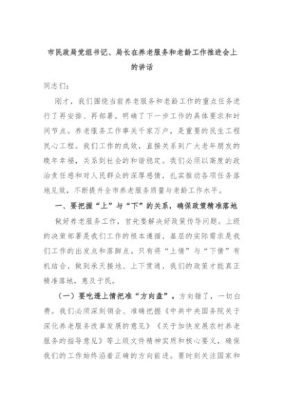 【七哥公文】2025年:市民政局党组书记、局长在养老服务和老龄工作推进会上的讲话+更多免费公文+VX:QiGeGongWen2024