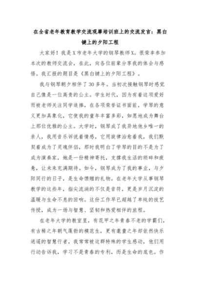 【七哥公文】2025年:在全省老年教育教学交流观摩培训班上的交流发言:黑白键上的夕阳工程+更多免费公文+VX:QiGeGongWen2024