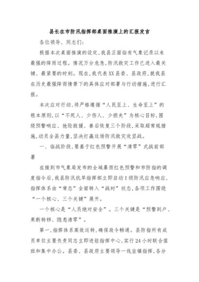 / 【七哥公文】2025年:县长在市防汛指挥部桌面推演上的汇报发言+更多免费公文+VX:QiGeGongWen2024