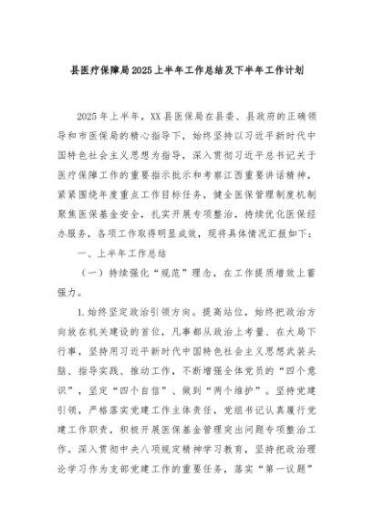 【七哥公文】2025年:县医疗保障局2025上半年工作总结及下半年工作计划+更多免费公文+VX:QiGeGongWen2024