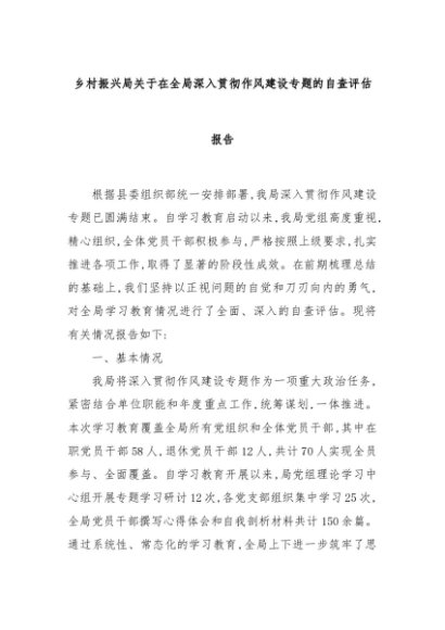 【七哥公文】2025年:乡村振兴局关于在全局深入贯彻作风建设专题的自查评估报告+更多免费公文+VX:QiGeGongWen2024