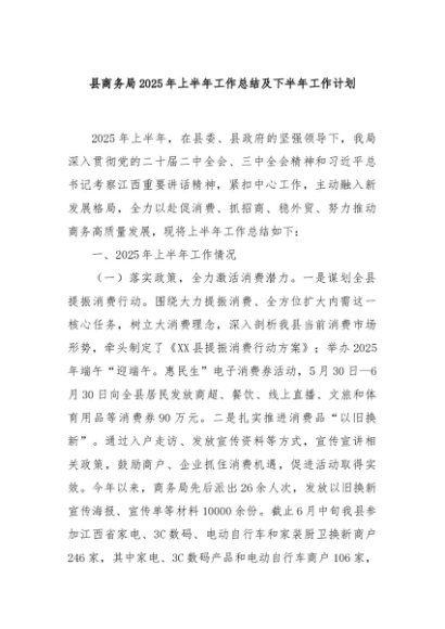 / 【七哥公文】2025年:县商务局2025年上半年工作总结及下半年工作计划+更多免费公文+VX:QiGeGongWen2024