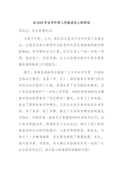 / 【七哥公文】2025年:在2025年全市外贸工作座谈会上的讲话+更多免费公文+VX:QiGeGongWen2024