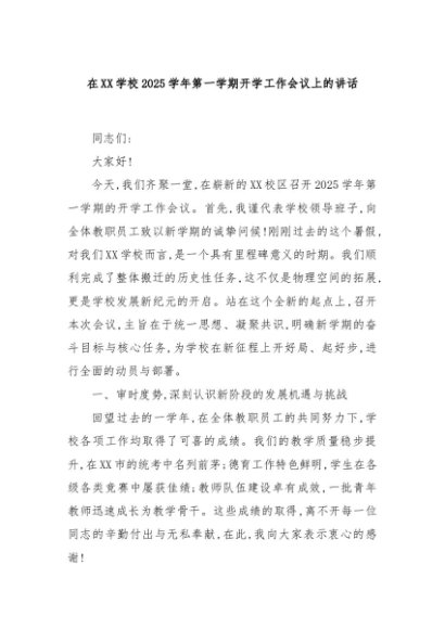【七哥公文】2025年:在XX学校2025学年第一学期开学工作会议上的讲话+更多免费公文+VX:QiGeGongWen2024