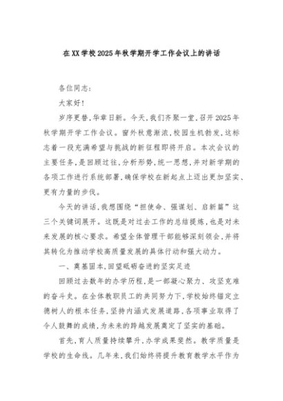 / 【七哥公文】2025年:在XX学校2025年秋学期开学工作会议上的讲话+更多免费公文+VX:QiGeGongWen2024
