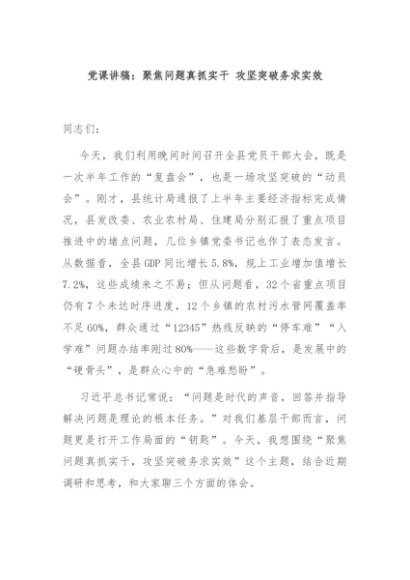 / 【七哥公文】2025年:党课讲稿:聚焦问题真抓实干 攻坚突破务求实效+更多免费公文+VX:QiGeGongWen2024