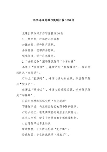 【七哥公文】2025年:2025年8月写作提纲汇编1600例+更多免费公文+VX:QiGeGongWen2024