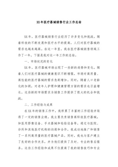 / 【七哥公文】2025年:XX年医疗器械销售行业工作总结+更多免费公文+VX:QiGeGongWen2024
