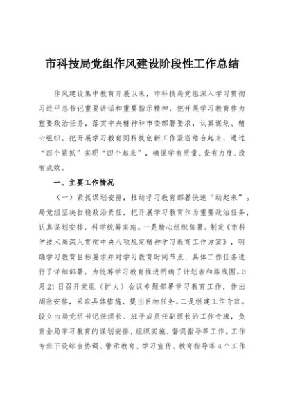 / 【七哥公文】2025年:市科技局党组作风建设阶段性工作总结+更多免费公文+VX:QiGeGongWen2024