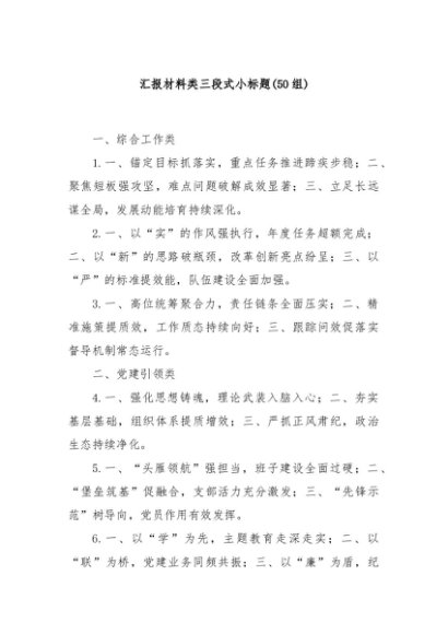/ 【七哥公文】2025年:(50组)汇报材料类三段式小标题+更多免费公文+VX:QiGeGongWen2024
