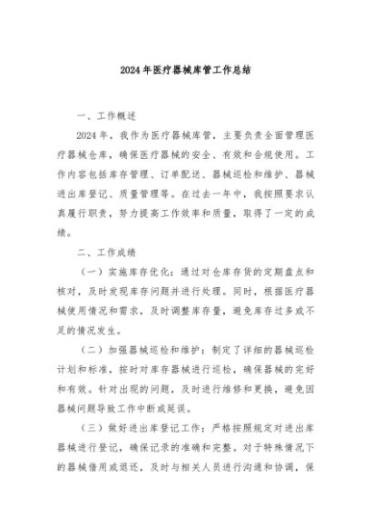 / 【七哥公文】2025年:2024年医疗器械库管工作总结+更多免费公文+VX:QiGeGongWen2024