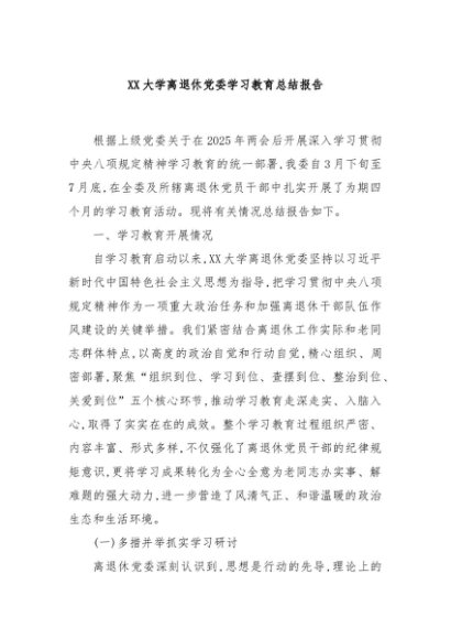 / 【七哥公文】2025年:XX大学离退休党委学习教育总结报告+更多免费公文+VX:QiGeGongWen2024