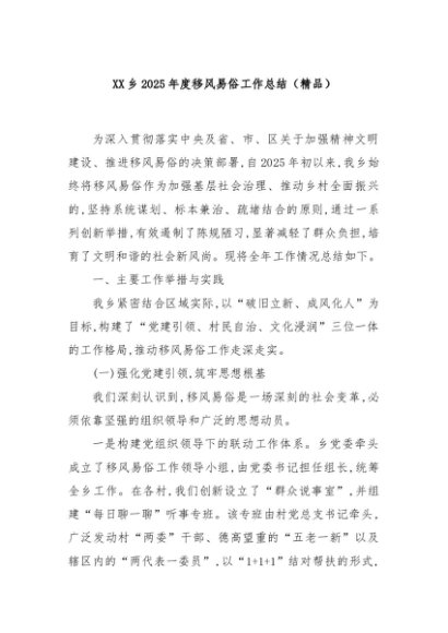 / 【七哥公文】2025年:XX乡2025年度移风易俗工作总结(精品)+更多免费公文+VX:QiGeGongWen2024