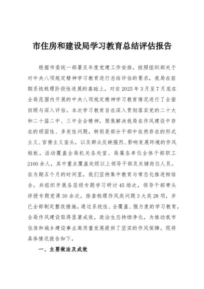 / 【七哥公文】2025年:市住房和建设局学习教育总结评估报告+更多免费公文+VX:QiGeGongWen2024