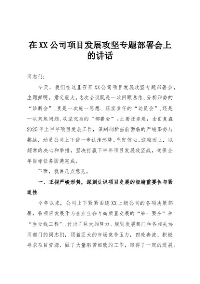 / 【七哥公文】2025年:在XX公司项目发展攻坚专题部署会上的讲话+更多免费公文+VX:QiGeGongWen2024