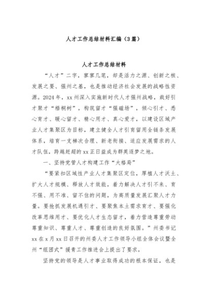 / 【七哥公文】2025年:(3篇)人才工作总结材料汇编+更多免费公文+VX:QiGeGongWen2024