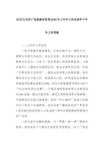【七哥公文】2025年:XX区文化和广电旅游体育局2025年上半年工作总结和下半年工作思路+更多免费公文+VX:QiGeGongWen2024