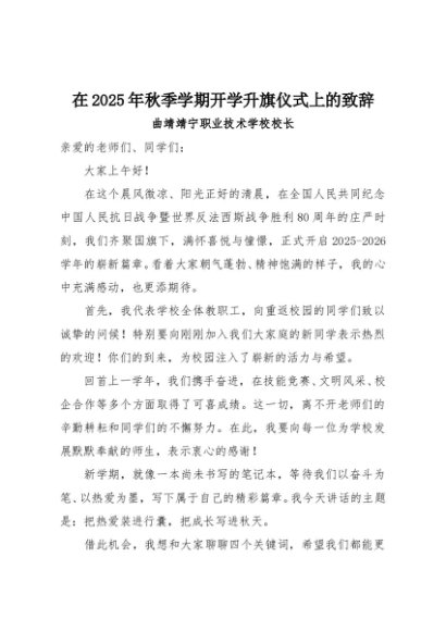 / 【七哥公文】2025年:在2025年秋季学期开学升旗仪式上的致辞+更多免费公文+VX:QiGeGongWen2024