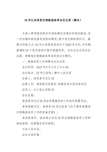 / 【七哥公文】2025年:XX市公安局党支部换届选举会议记录(精品)+更多免费公文+VX:QiGeGongWen2024