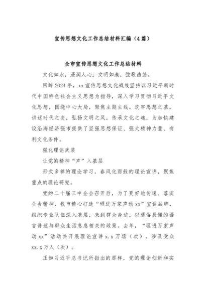 / 【七哥公文】2025年:(4篇)宣传思想文化工作总结材料汇编+更多免费公文+VX:QiGeGongWen2024