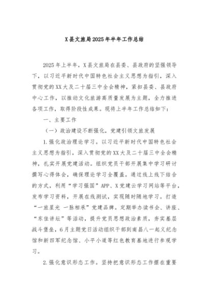 / 【七哥公文】2025年:X县文旅局2025年半年工作总结+更多免费公文+VX:QiGeGongWen2024