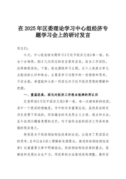 【七哥公文】2025年:在2025年区委理论学习中心组经济专题学习会上的研讨发言+更多免费公文+VX:QiGeGongWen2024