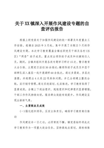 / 【七哥公文】2025年:关于XX镇深入开展作风建设专题的自查评估报告+更多免费公文+VX:QiGeGongWen2024
