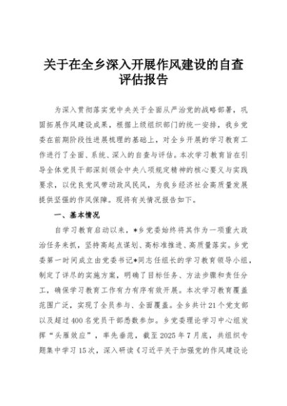 / 【七哥公文】2025年:关于在全乡深入开展作风建设的自查评估报告+更多免费公文+VX:QiGeGongWen2024