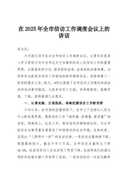 / 【七哥公文】2025年:在2025年全市信访工作调度会议上的讲话+更多免费公文+VX:QiGeGongWen2024