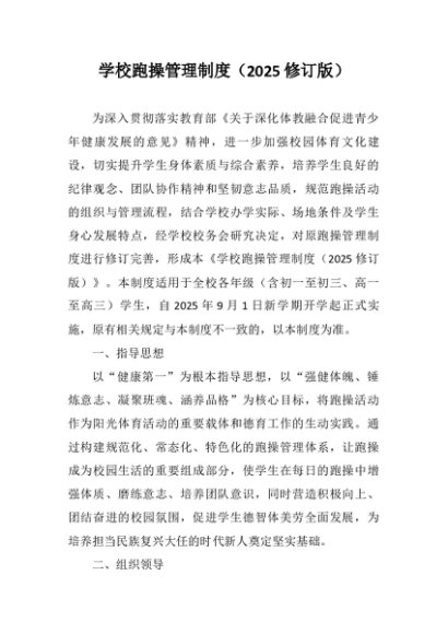 / 【七哥公文】2025年:学校跑操管理制度(2025修订版)+更多免费公文+VX:QiGeGongWen2024
