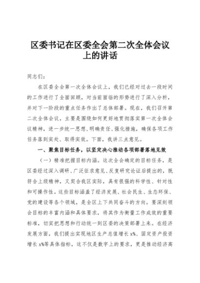 / 【七哥公文】2025年:区委书记在区委全会第二次全体会议上的讲话+更多免费公文+VX:QiGeGongWen2024