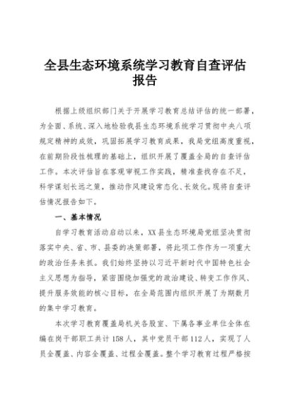 / 【七哥公文】2025年:全县生态环境系统学习教育自查评估报告+更多免费公文+VX:QiGeGongWen2024