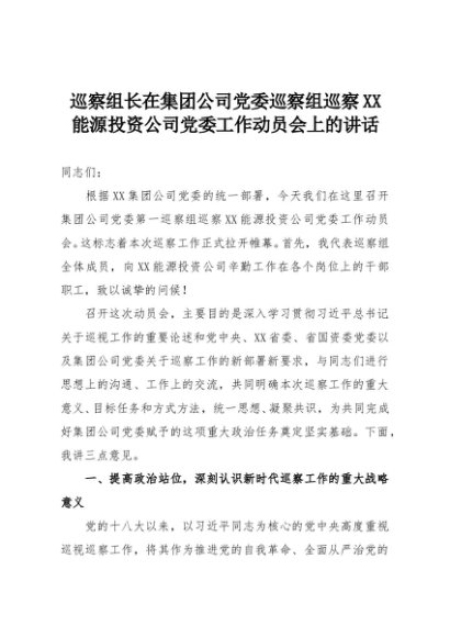 【七哥公文】2025年:巡察组长在集团公司党委巡察组巡察XX能源投资公司党委工作动员会上的讲话+更多免费公文+VX:QiGeGongWen2024