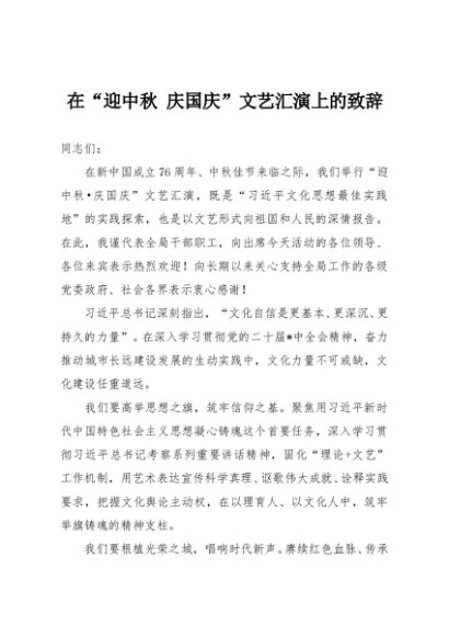 / 【七哥公文】2025年:在“迎中秋 庆国庆”文艺汇演上的致辞+更多免费公文+VX:QiGeGongWen2024