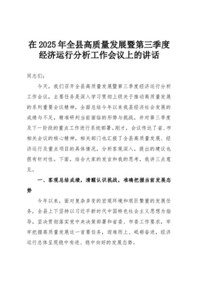 【七哥公文】2025年:在2025年全县高质量发展暨第三季度经济运行分析工作会议上的讲话+更多免费公文+VX:QiGeGongWen2024