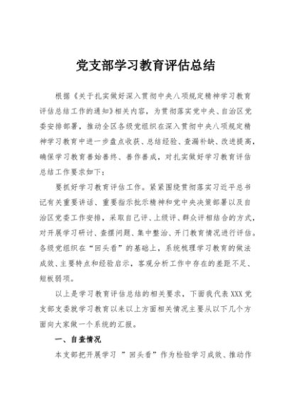 【七哥公文】2025年:党支部学习教育评估总结+更多免费公文+VX:QiGeGongWen2024