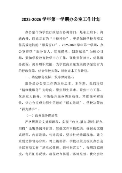 / 【七哥公文】2025年:2025-2026学年第一学期办公室工作计划+更多免费公文+VX:QiGeGongWen2024