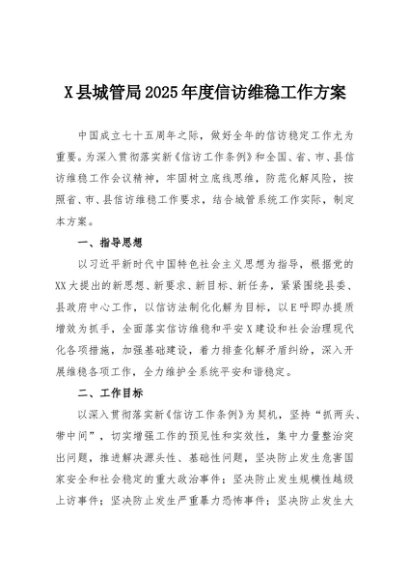 / 【七哥公文】2025年:X县城管局2025年度信访维稳工作方案+更多免费公文+VX:QiGeGongWen2024