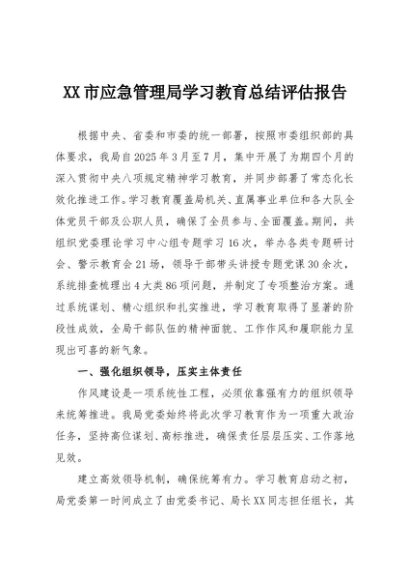 / 【七哥公文】2025年:XX市应急管理局学习教育总结评估报告+更多免费公文+VX:QiGeGongWen2024