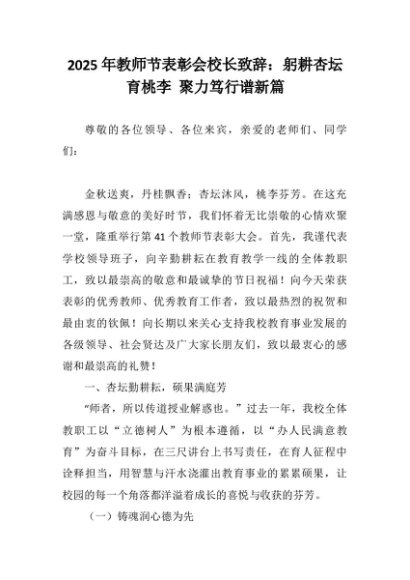 【七哥公文】2025年:2025年教师节表彰会校长致辞:躬耕杏坛育桃李 聚力笃行谱新篇+更多免费公文+VX:QiGeGongWen2024