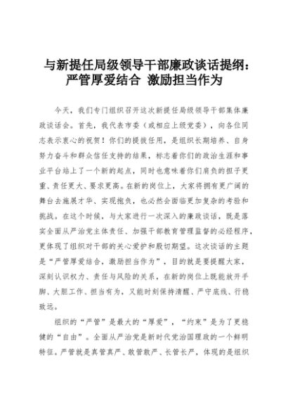 【七哥公文】2025年:与新提任局级领导干部廉政谈话提纲:严管厚爱结合 激励担当作为+更多免费公文+VX:QiGeGongWen2024