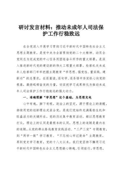 / 【七哥公文】2025年:研讨发言材料:推动未成年人司法保护工作行稳致远+更多免费公文+VX:QiGeGongWen2024