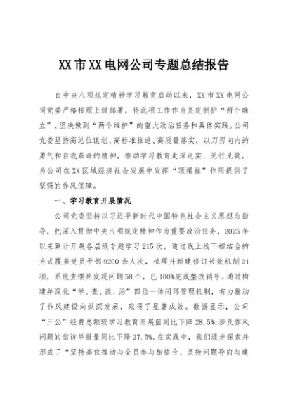 / 【七哥公文】2025年:XX市XX电网公司专题总结报告+更多免费公文+VX:QiGeGongWen2024